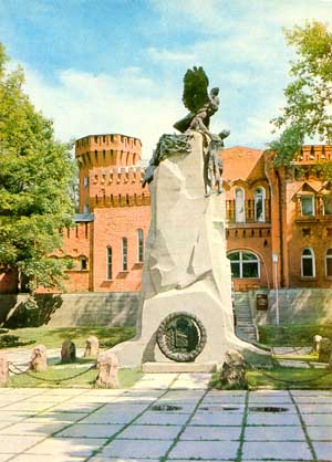 Смоленск. Памятник «Героям 1812 года» (скульптор С. Р. Надольский, архитектор Н. С. Шуцман, 1913). Памятник представляет собой каменную скалу с орлиным гнездом на вершине. У гнезда два орла. На уступах скалы — фигура галльского воина, одетого в античные доспехи. Воин стремится достичь вершины, рука с обнаженным мечом занесена над гнездом. Но его удар сдерживает орел: он распростер свои мощные крылья и цепкими когтями держит галла за руку. Второй орел прикрывает гнездо, он готов взлететь и наброситься на неприятеля с тыла. Гнездо, орлы и фигура галла отлиты из металла. Каменная скала символизирует неприступную Россию, орлы — 1-ю и 2-ю русские армии. На восточной стороне памятника прикреплена бронзовая доска, изображающая карту европейской части России, с надписью: «Благодарная Россия героям 1812 г.» На противоположной стороне — имена генералов Барклая-де-Толли, Багратиона, Неверовского, Раевского, Дохтурова, войска которых отличились под Смоленском. С двух сторон к скале, у ее основания, при креплены бронзовые венки. В одном помещен герб России, в другом — герб Смоленска. Фото В. Иванова.