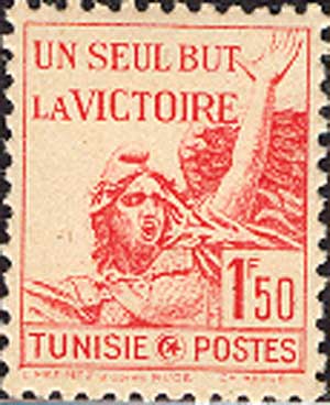 Тунис, 1943, 1.50 fr. П. металлография. 12. красная
