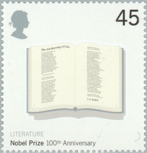Стихотворение Т. С. Элиота «Обращение к кошкам», напечатанное на страницах открытой книги.