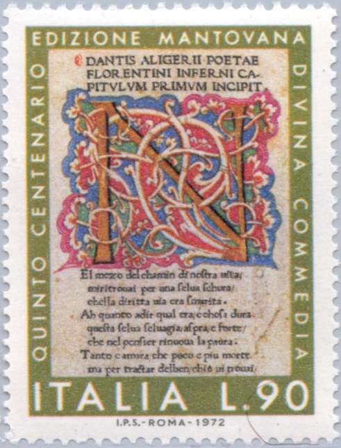 Италия, 1972, 90 L. П. глубокая. 14 х 13 (1/2). многоцветная