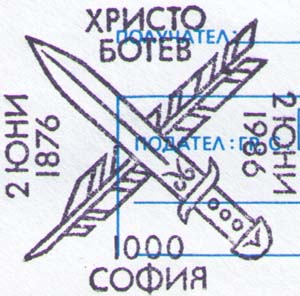 София. 110 лет со дня смерти Христо Ботева. Скрещенные меч и перо.