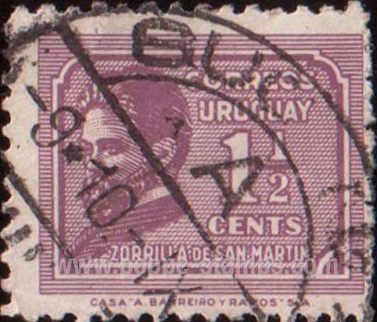 Уругвай, 1932, 1 P. П. высокая. 11 (1/2). красно-коричневая