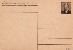 Карточка франкирована маркой с портретом Антонина Запотоцкого.