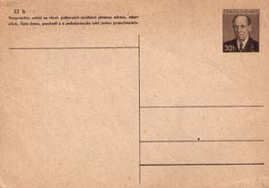Карточка франкирована маркой с портретом Антонина Запотоцкого.