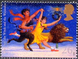 Philatelia.Ru / Детская литература / Марки / Фавн Тумнус, девочка Люси и лев АсланСерия: Знаменитые детские повести-сказки
