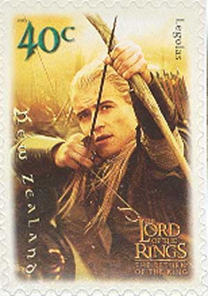Эльф Леголас (актер Орландо Блум) стреляет из лука.