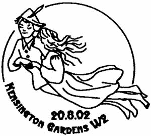 Лондон, Кенсингтонские сады. Первый день серии марок М2038/2042. Питер Пэн и Венди в полете.