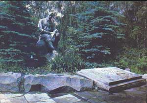 Свердловск. Памятник на могиле Павлу Бажова на Ивановском кладбище (скульптор А. Ф. Степанова, архитектор М. Л. Минц, 1961). Фото Б. Мусихина.